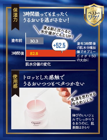 一番の魅力は、持続する高い保湿力。それでいてベタつきが残らず、朝のメイク前にも使いやすいのが魅力。エイジングケアを期待できる成分も入っていて、大人も満足できる逸品です。