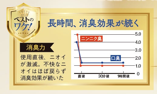 一瞬で不快臭を消し、1時間たってもニオイが戻らない超優秀な消臭力。甘みがあって低刺激なうえに量の調節がしやすいノズル式のボトルと、使い勝手もバッチリです。