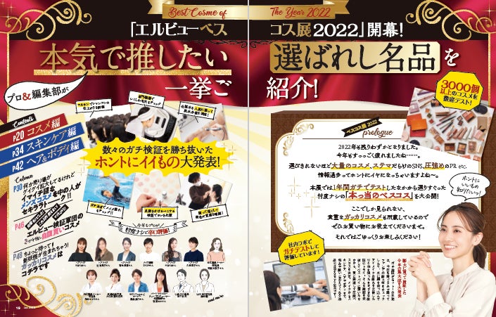1月号では、1年間で3000個以上ガチ検証した製品の中から大選抜した、心から推せる“ベスコス”を大発表! アイシャドウやファンデーションなどの「コスメ編」、美容液やオールインワンなどの「スキンケア編」、シャンプー&コンディショナーやマウスウォッシュなどの「ヘア&ボディ編」に分け、2022年の一番イイものを全部お見せします!