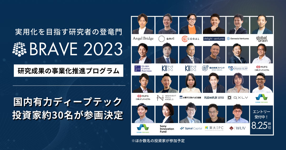 実用化を目指す研究者の登竜門「BRAVE」2023の本エントリー開始。国内有力ディープテック投資家約30名が参画決定【8/25締切】