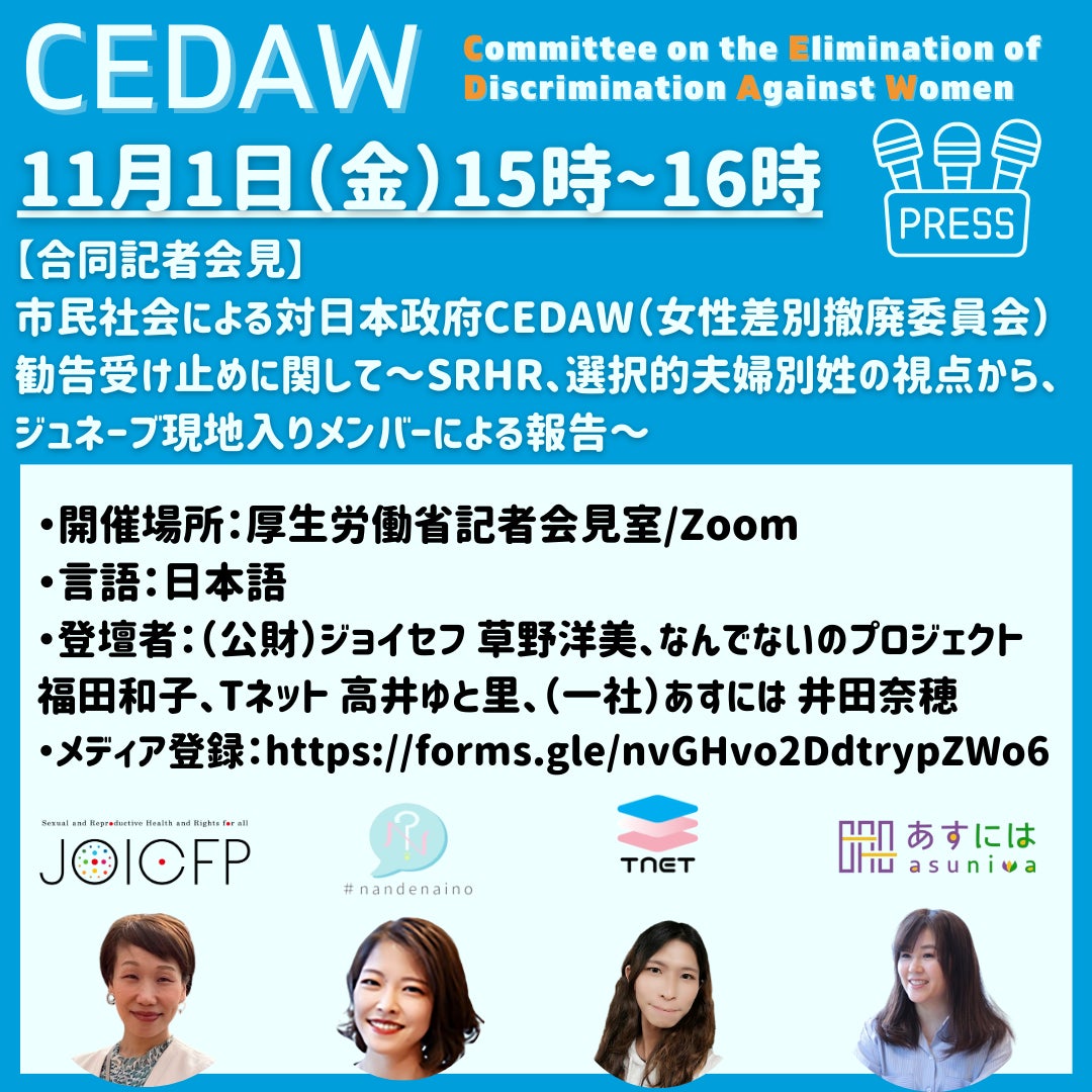 CEDAW(女性差別撤廃委員会)対日本政府:勧告をどう受け止めたか、市民社会記者会見~SRHRと選択的夫婦別姓の視点から。ジュネーブ帰国報告~