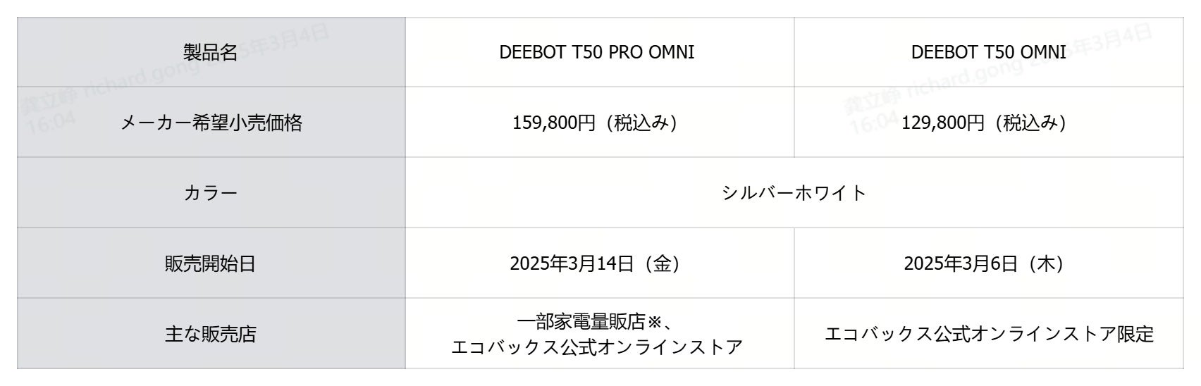 なお、新発売を記念し、エコバックス公式オンラインストアにて、DEEBOT T50 OMNIの割引キャンペーンを実施いたします。この機会に、是非ご検討ください。