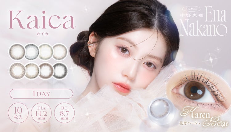 2025年4月の発売以来、『Kaica(カイカ)』は、「カラコン初心者でも使いやすい」「さりげないけど印象的」といった声を集め、ナチュラル志向ユーザーから高い支持を獲得しています。今回の刷新では、女優・インフルエンサーとして絶大な影響力を持つ中野恵那さんをイメージモデルに迎え、既存のカイカファンに加え、より多くの幅広い世代へ向けたブランド浸透を加速させます。