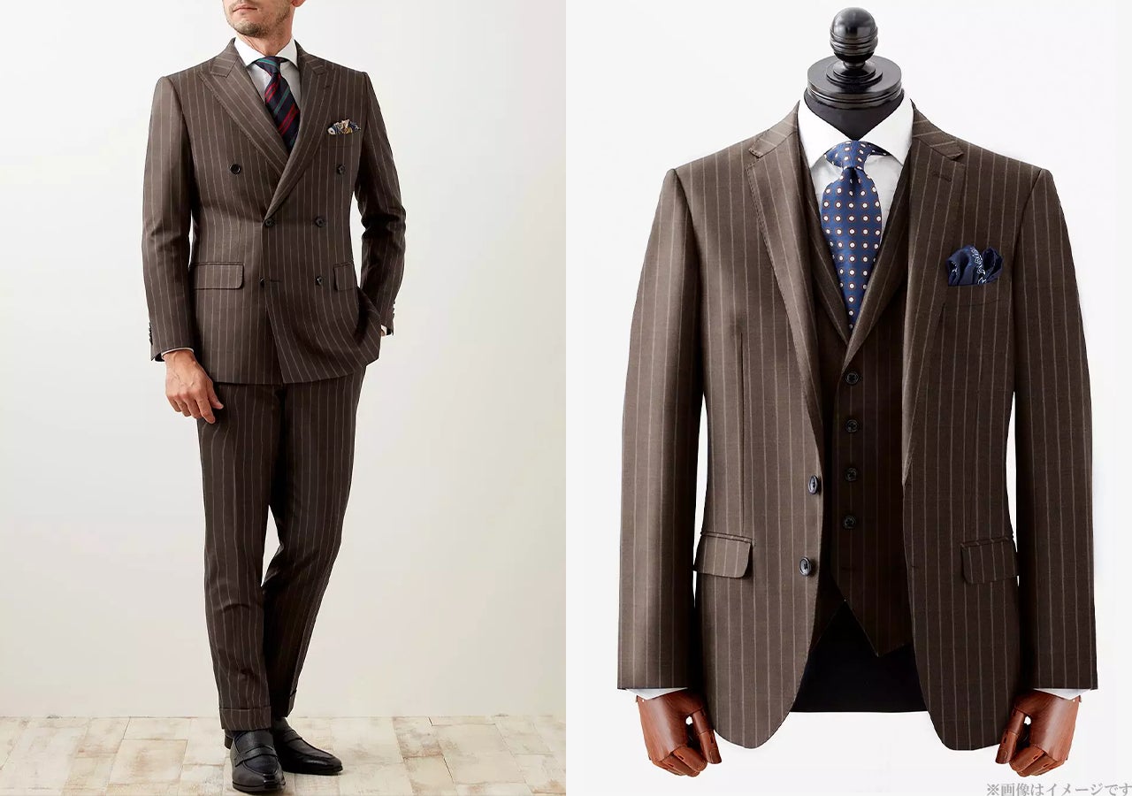 ビジネスシーンで人気のピンストライプ。幅が広いストライプは存在感も抜群です。