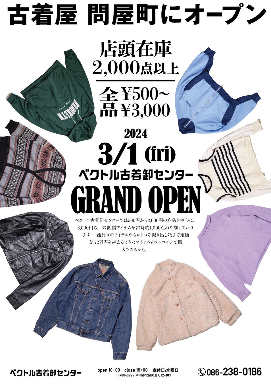 古着卸売倉庫ショップ「ベクトル古着卸センター」を3/1(金)にグランドオープン!特別企画として10点以上の購入で50%オフになる記念キャンペーンを実施
