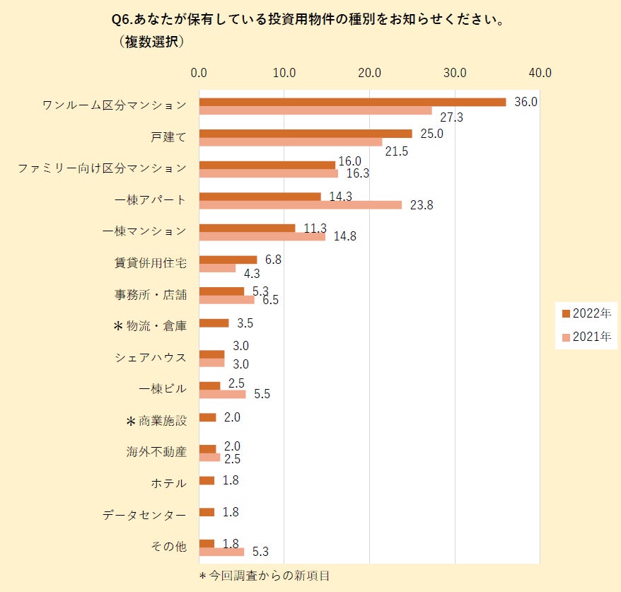 ⑥保有している物件 ワンルーム区分マンションが大幅増加