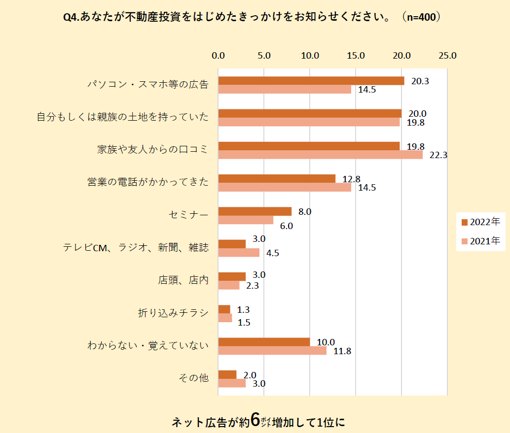 ネット広告やセミナーをきっかけに不動産投資を始める比率が増加