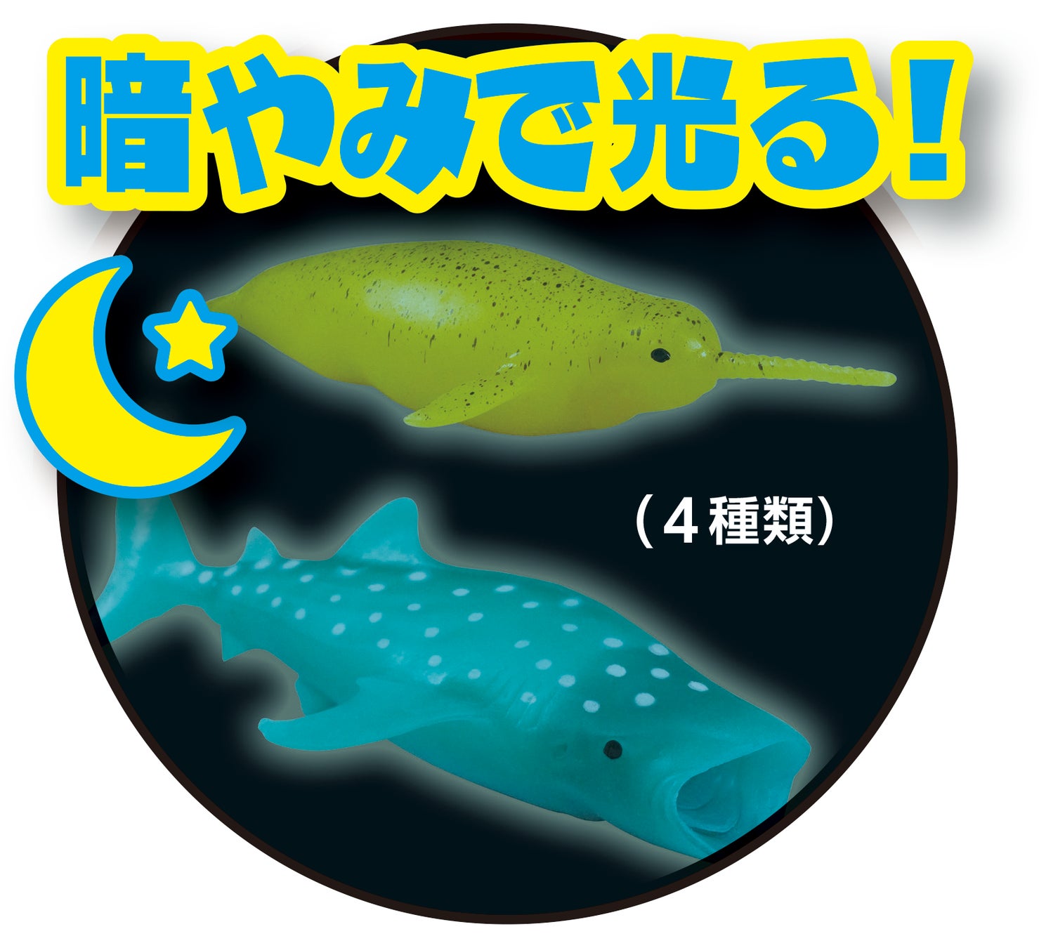 き物の生態をブックレットとフィギュアで楽しく学べる知育玩具として、子どもから大人まで幅広い世代に愛されています。新作のモチーフは、海に住む“くじらとその仲間たち”。アンド・コシリーズの特長のひとつである“のび~る”ギミックはもちろん、温度で色が変わったり(2種類)、暗闇で光る(4種類)フィギュアも。大迫力のゴールドの「シャチ」とシルバーの「ウバザメ」のレアキャラ2種も含む、全16種類をラインナップします。