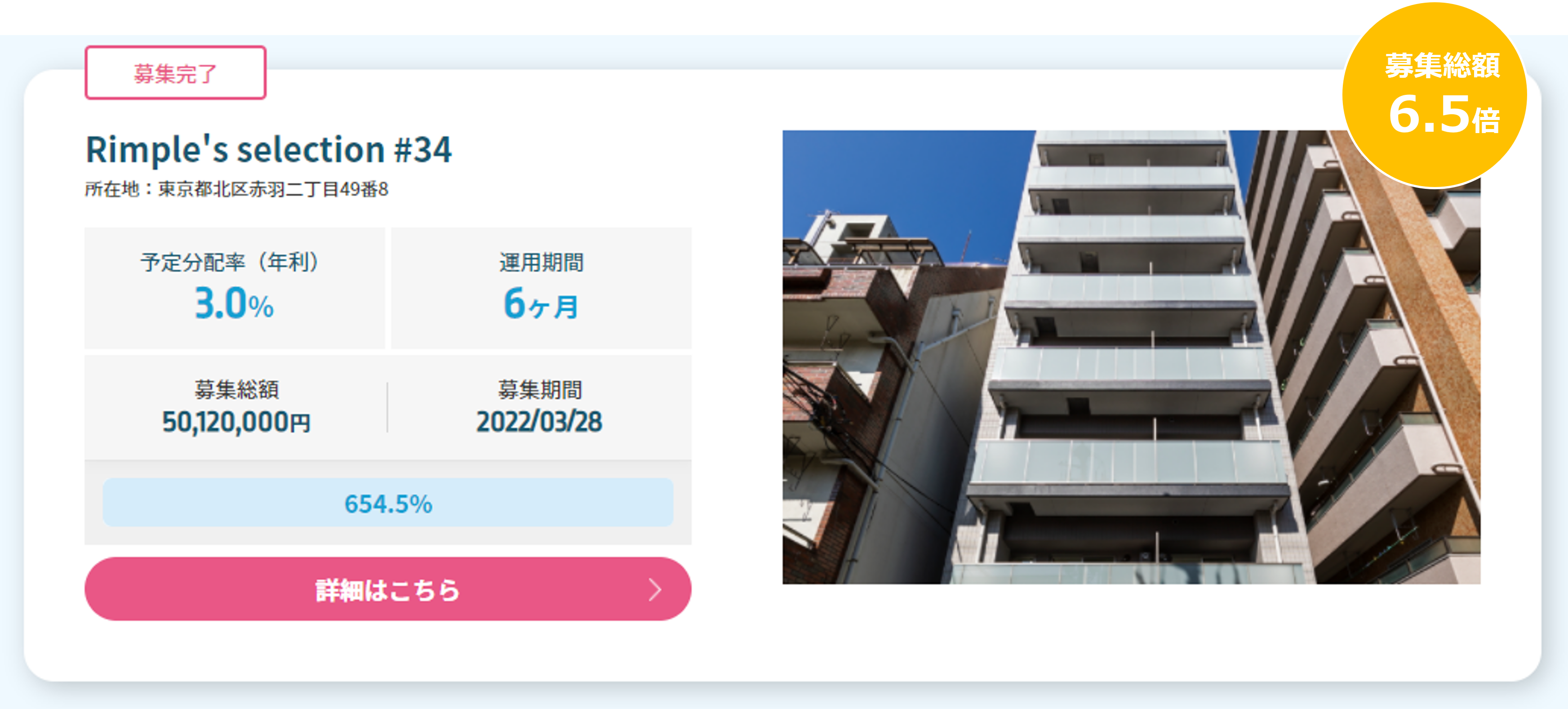Rimple’s Selection#34募集総額654.5%の3.28億円の応募