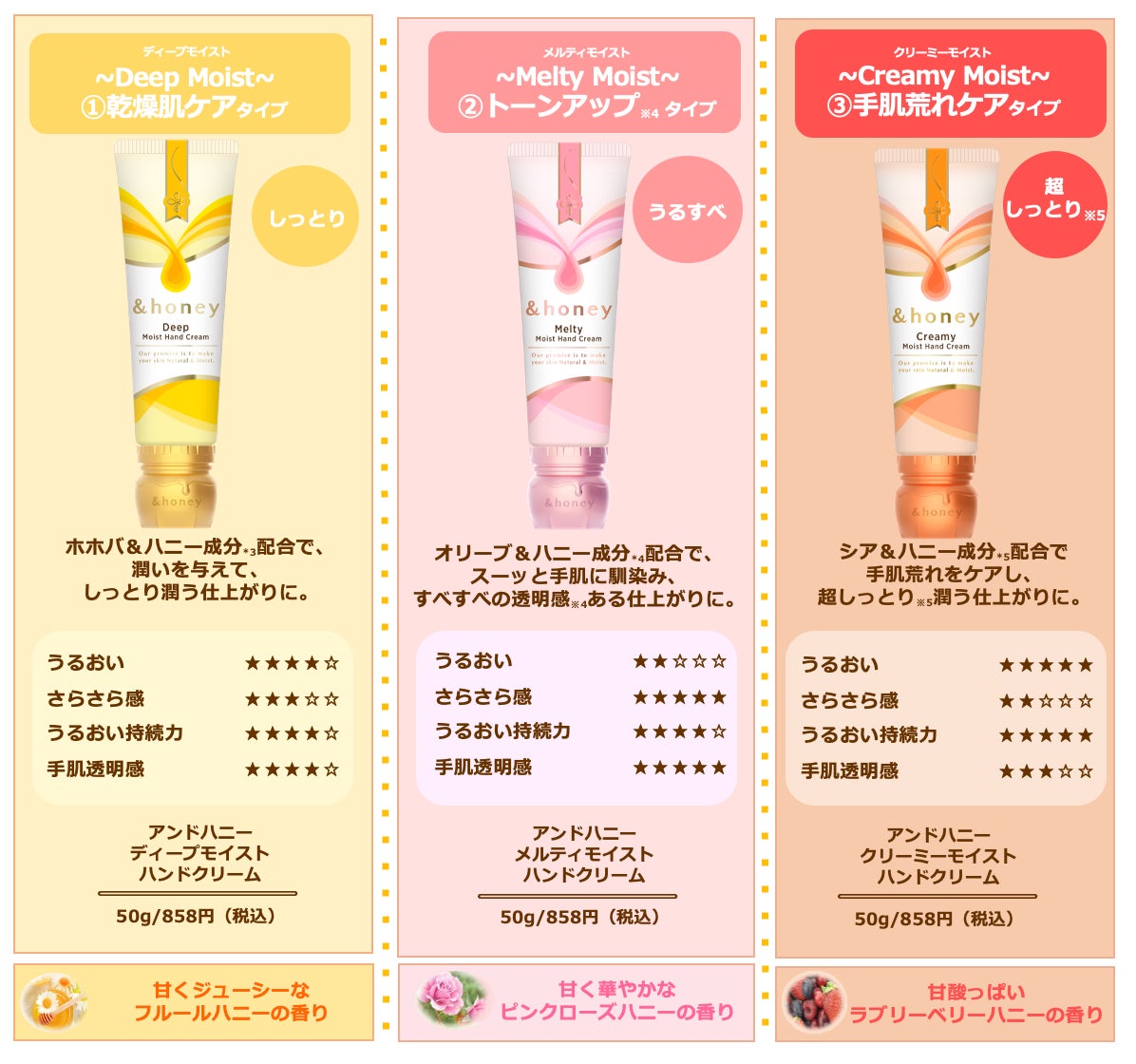 本製品は、ブランド独自のハチミツ配合比率※2を採用することで、手肌のうるおいを持続させ、秋冬の乾燥が気になる季節におすすめのベタつきにくいハンドクリームです。