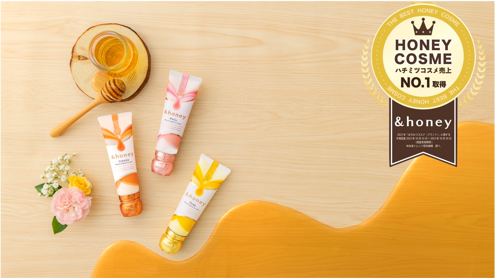 ※1 2023年「ハチミツコスメ(ブランド)」に関する市場調査2023年10月16日〜2023年10月28日(調査実施期間)(株)未来トレンド研究機構調べ(2022年1月〜12月における売上シェアに基づく(&honeyシリーズ))