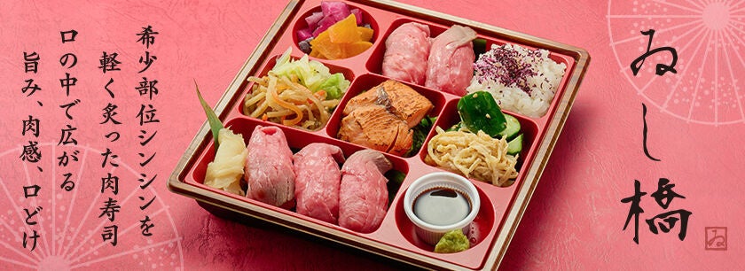 また、北海道では、老舗百貨店にも並ぶ肉寿司にこだわった和食割烹「ゐし橋」のお弁当をデリバリー開始いたします。