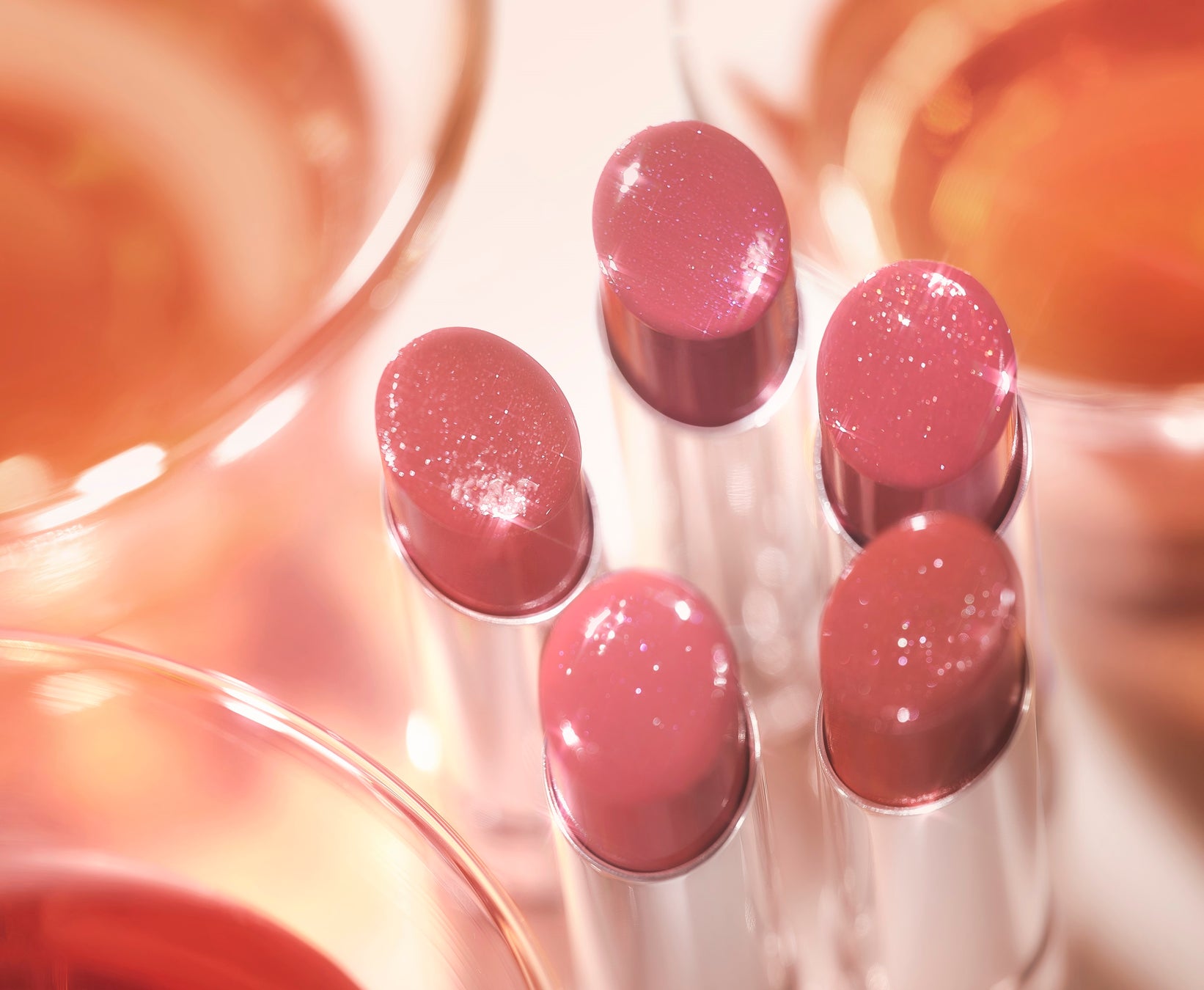 透明度の高いスクワランオイル※1 に、唇に光を取り込みながら反射する微細な「疑似ツヤパール」を配合した独自処方は、塗布膜の「厚み」でツヤを作るのではなく、薄い塗膜でぷるんとしたツヤ感を生むアプローチ。