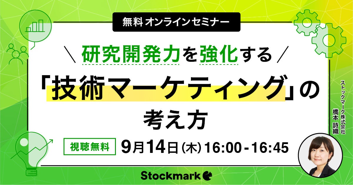 【9月14日(木) 無料セミナー】『研究開発力を強化する「技術マーケティング」の考え方』を開催(ストックマーク主催)