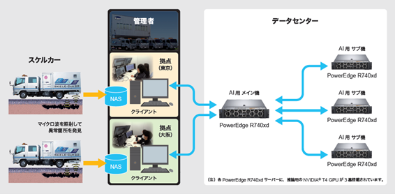 デル・テクノロジーズ株式会社(本社:東京都千代田区、代表取締役社長:大塚 俊彦、以下、デル・テクノロジーズ、URL:https://www.dell.com/ja-jp)は、ジオ・サーチ株式会社(本社:東京都大田区、代表取締役社長:雑賀 正嗣、以下、ジオ・サーチ、URL:https://www.geosearch.co.jp/ )に、NVIDIA® T4 GPU搭載の「Dell PowerEdge(https://www.dell.com/ja-jp/dt/servers/poweredge-rack-servers.htm#tab1=0&accordion0&tab0=2&accordion1&accordion2&accordion3 )」AIサーバーで支援していることを発表しました。オンプレミス環境のサーバーで40~50GB/日の解析用データ転送を実現し、これまで年間2万kmしか対応できなかった路面下空洞調査の対象距離を、将来的に約12万kmに拡大し、道路陥没の防止などの社会インフラの「減災」に貢献します。