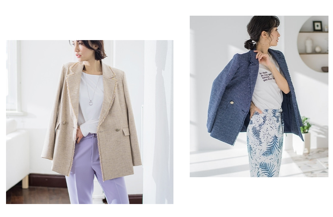 まだまだ続くトレンドのツイードを、春から夏にかけて楽しんで頂ける軽い素材でバリエーション豊富にご提案致します。