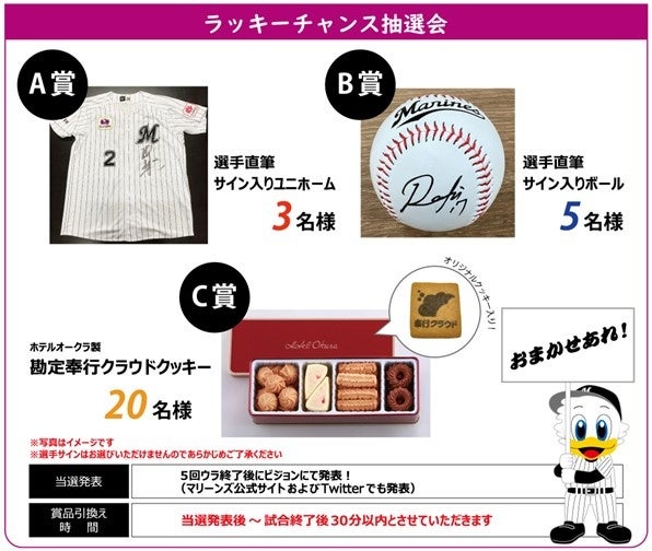 当日は、ZOZOマリンスタジアムのいたるところにOBCのCMやロゴマークが登場します。ラッキーチャンス抽選会や、先着10,000名様への限定プレゼント企画もございますので、お誘い合わせのうえ、ぜひご来場ください。
