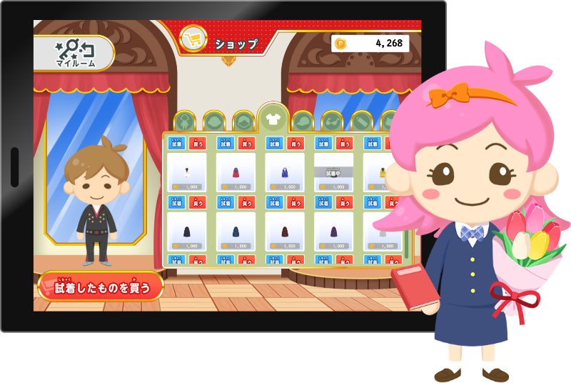 ⇒積み木の世界観をベースとし、トレーニングをすることで積み木の獲得が可能。獲得した積み木でオブジェを作ったり、アバター着せ替え、ガチャ機能など、ゲーム要素を取り入れており、楽しみながら続けることができます。