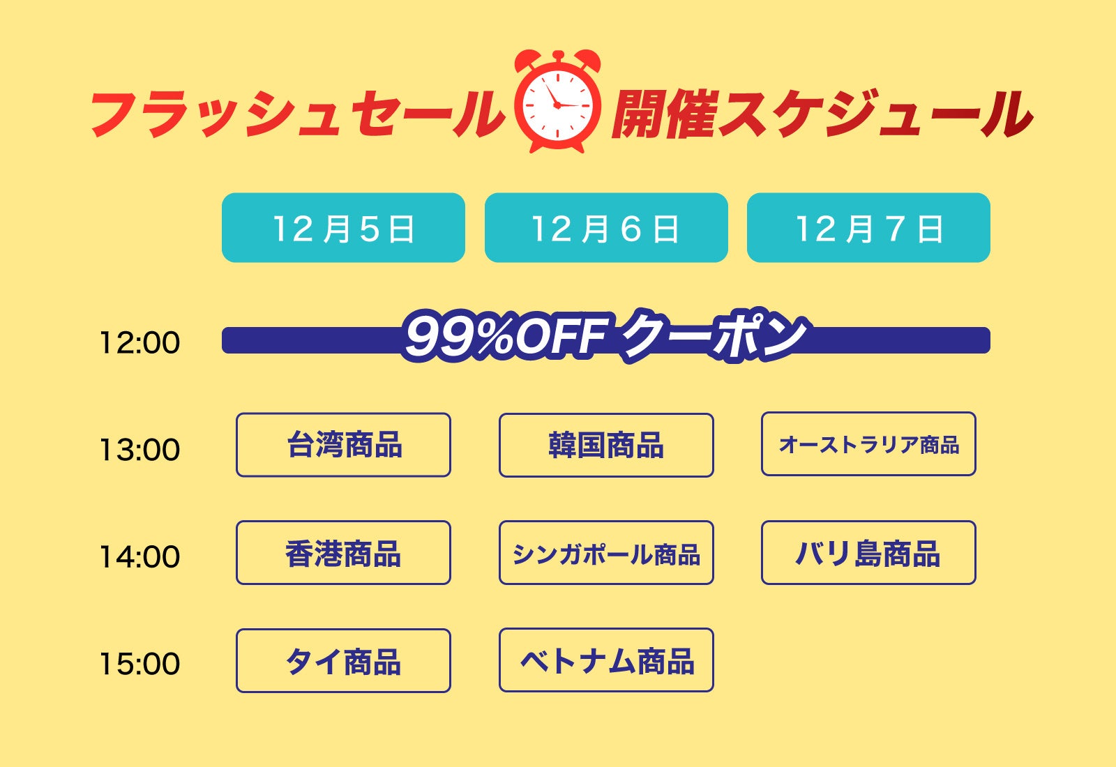第1弾 | 12/5(火)正午〜12/7(木) | 海外の人気商品を数量限定で 99%OFFクーポン配布&対象商品が50%OFF |