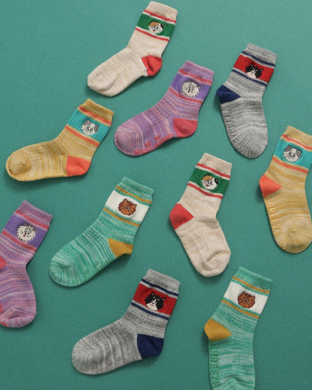 ラインとワンポイントでネコの刺繍が入ったソックス。