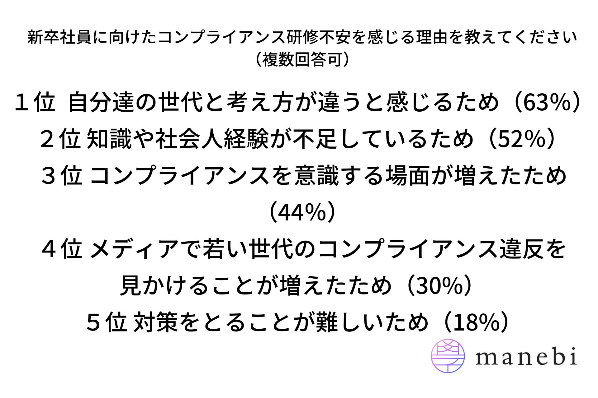 社員教育システムを展開する株式会社manebi、新卒のコンプライアンス研修についての調査を実施