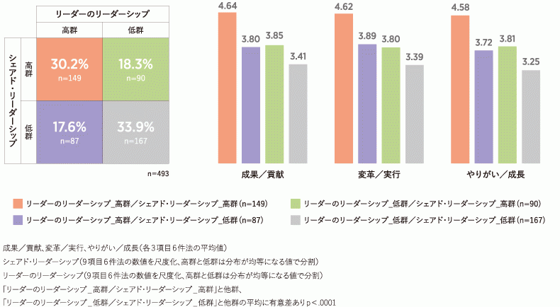 図表8 リーダーとメンバー双方のリーダーシップとパフォーマンス〈n=493〉