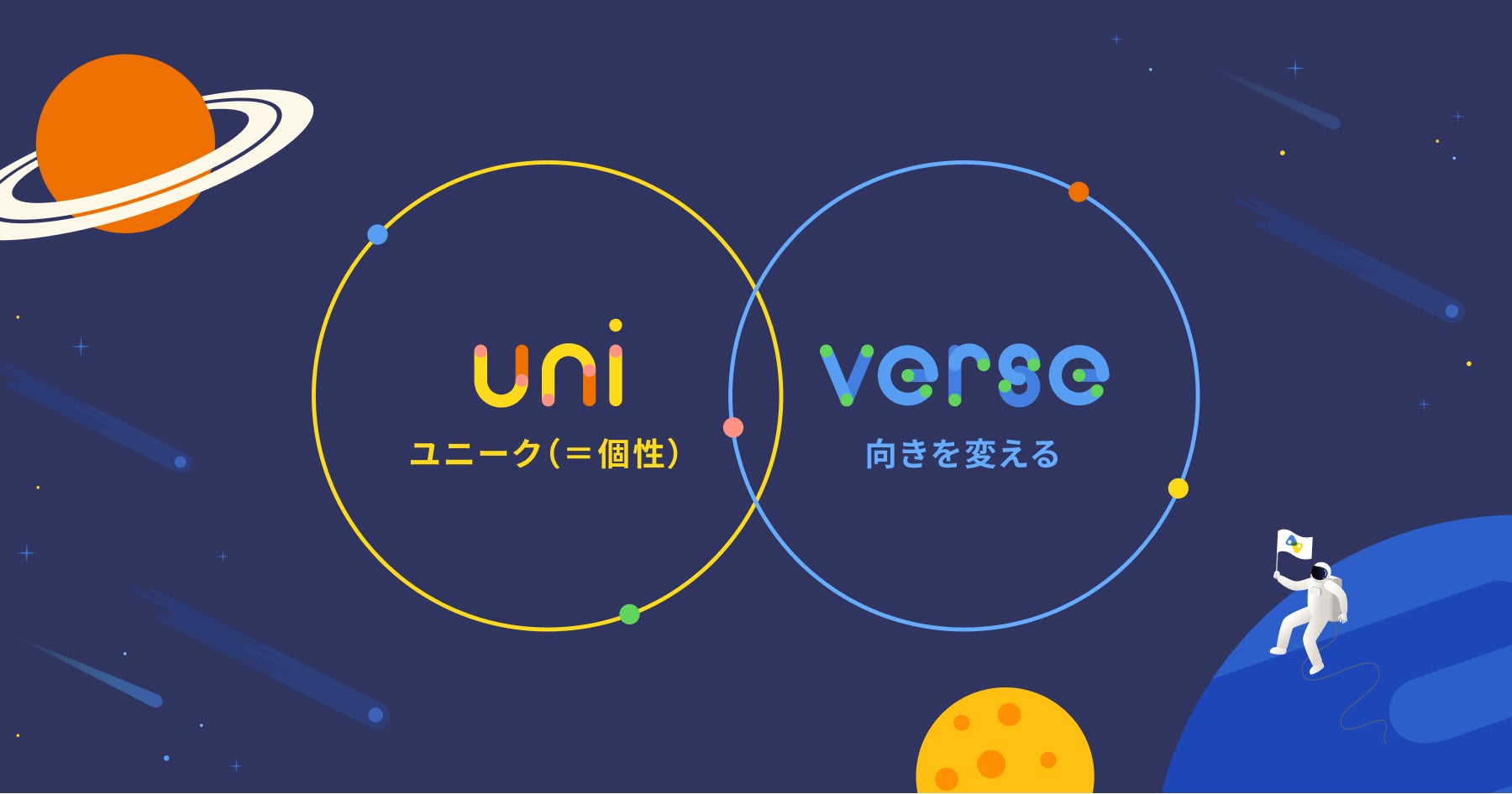 kaonavi universeは、無限の可能性を秘めた宇宙(universe)をイメージし、「人の個性には無限の可能性があること」を表現したものです。また、Uniqueから取った「uni」と向きを変えるという意味を持つ「verse」を組み合わせ「あらゆる個性が集まり、世界をより良く変えていく」という、カオナビの意志も込めています。サイトは、訪れた方がワクワクするような仕掛けを随所に施し、ユニークなデザインになっています。