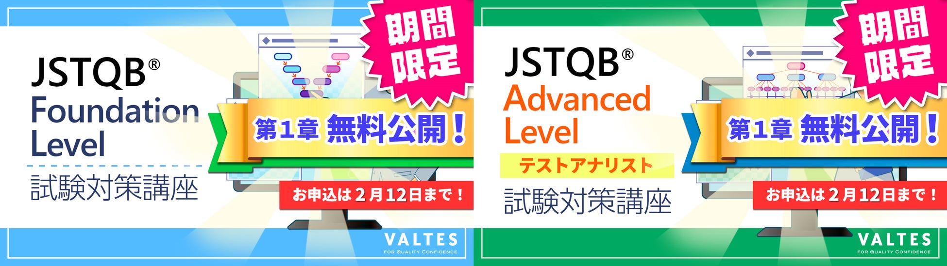 JSTQB資格の取得を目指す皆様にお役立ていただけるよう、Foundation Level試験とAdvanced Level試験対策eラーニング講座の、それぞれ第1章を無料公開する運びとなりました。