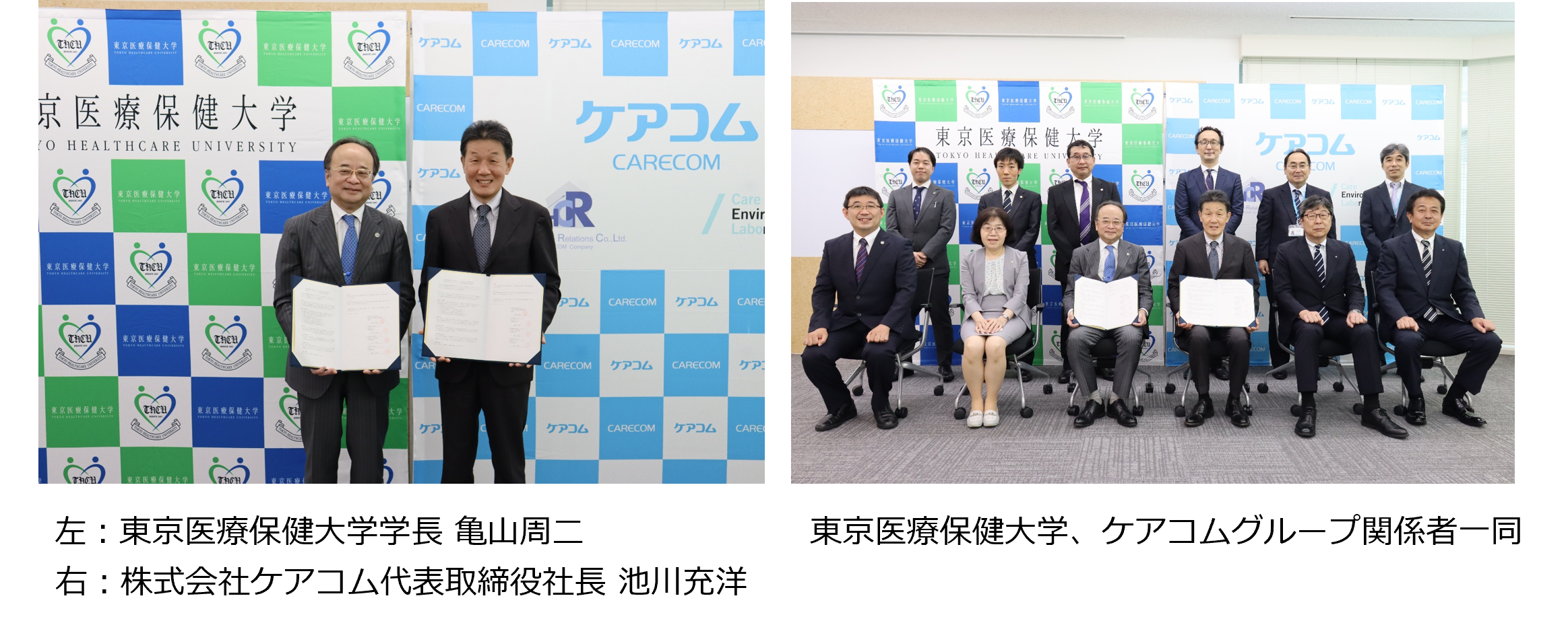 東京医療保健大学とケアコムグループは、人的・知的資源の交流と活用を図り、包括的な連携のもと、教育、研究等の分野において相互に協力し、ICTを活用した地域社会の持続的な発展と人材育成及び学術研究の振興に寄与する事業を行ってまいります。