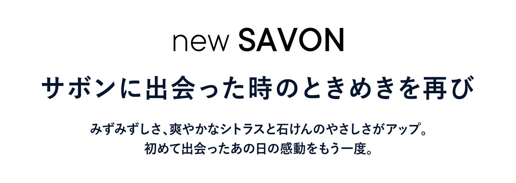 新しいサボンは、従来の香りの良さはそのままに、ラストノートに残る甘さを軽減させました。さらに、フルーティさを加えることで、すっきりとした爽やかさと優しい甘さの絶妙なバランスへと仕上げました。