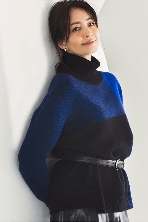□商品名:ソフトカシミヤミックスブロッキングハイネックニット