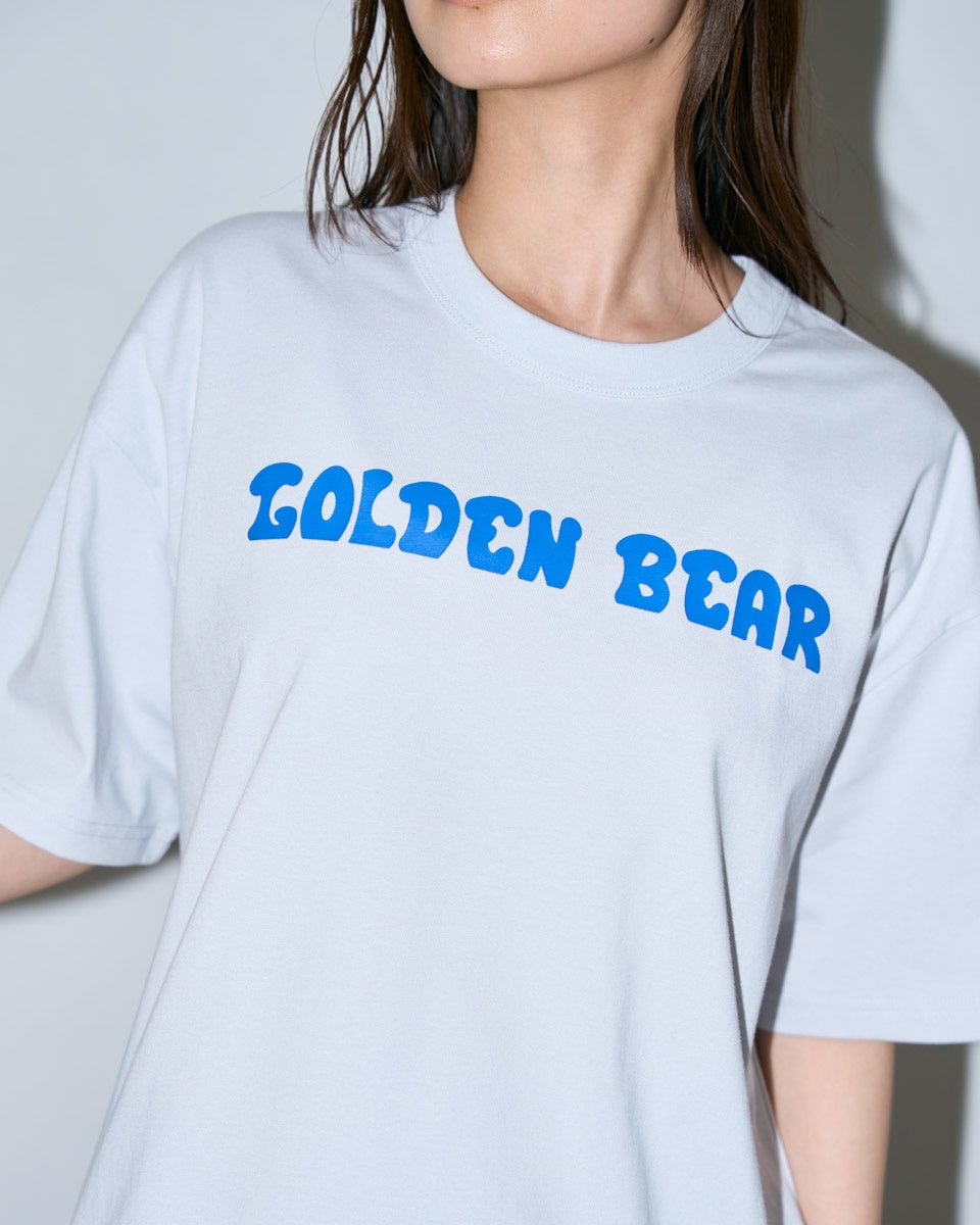 べースのTシャツは透けにくく、接触冷感・吸水速乾性に優れた、なめらかな肌触りが特長のプレーティング天竺生地を使用。襟は強度のあるフライスで身頃を挟みこんだ、バインダー仕様にすることでヨレにくさにこだわりました。ゴールデンベアの通常のTシャツよりも、ややゆとりを持たせたシルエット。ラフに着られるサイズ感に仕上げました。Tシャツの左袖、ヘッドウェアの後ろに金熊の刺繍をあしらっています。