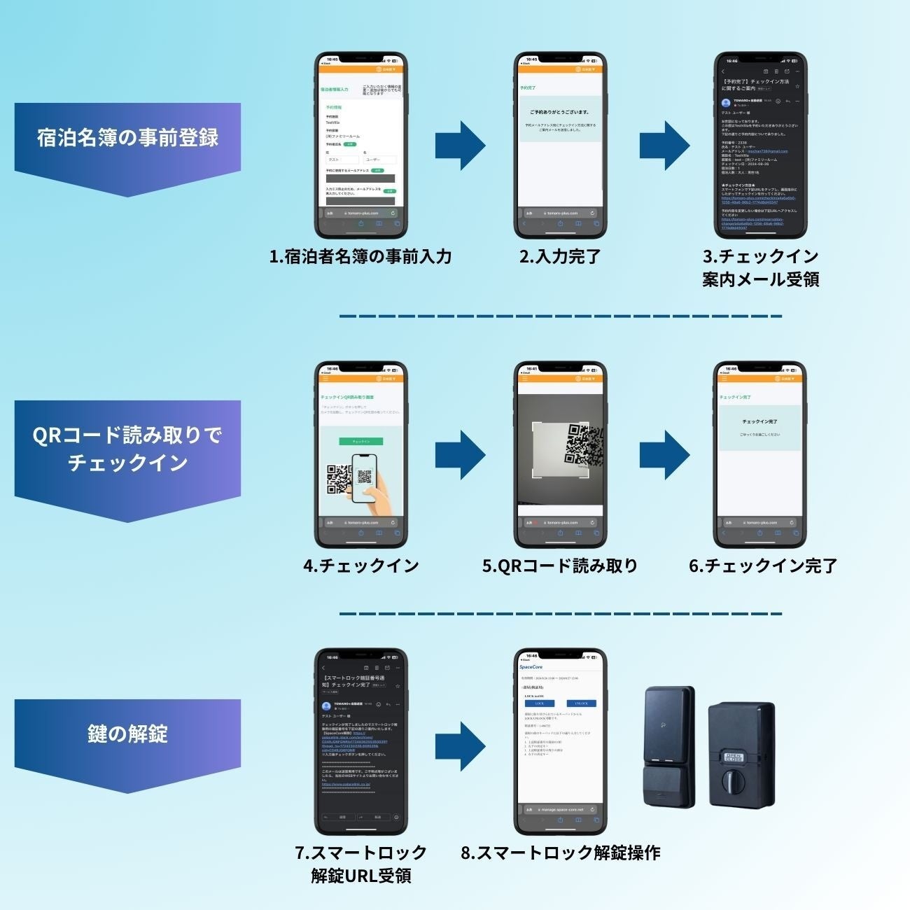 ・ゲストは宿泊施設の予約完了後に、自身のスマートフォンから宿泊者名簿の事前入力を行います。