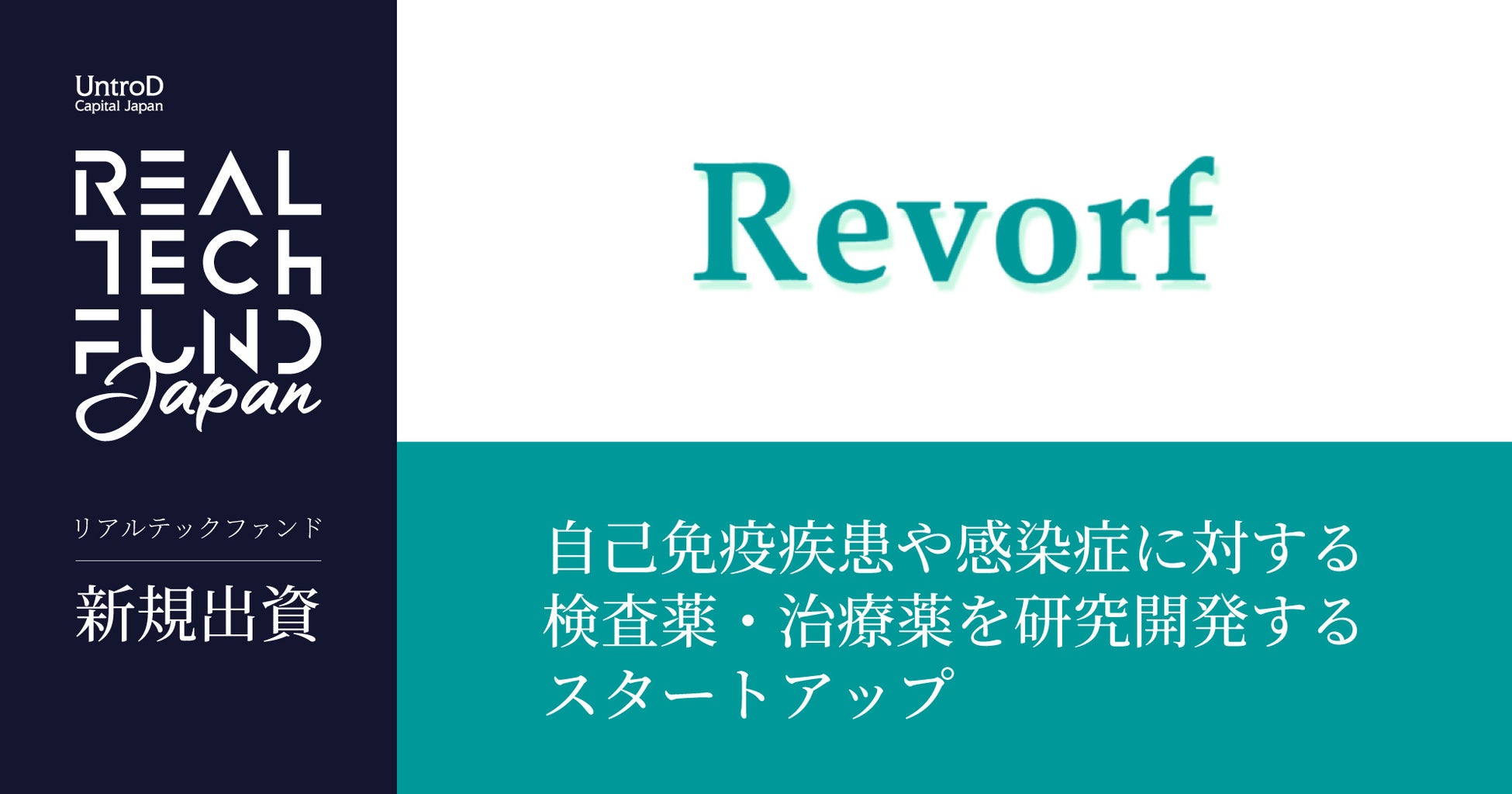 UntroD Capital Japan株式会社(所在地:東京都港区、代表:永田 暁彦)が運営するリアルテックファンド*は、独自のバイオ技術と情報解析技術を融合させた検査事業・創薬事業・創薬支援事業を手掛ける株式会社Revorf(本社:東京都中央区、代表取締役:末田 伸一、以下「Revorf」)へ投資を実施したことをお知らせ致します。Revorfは今回の調達資金をもとに、「β2GPIネオセルフ抗体検査」※1の国内外での展開やアロステリック創薬技術※2の研究開発を進めて参ります。
