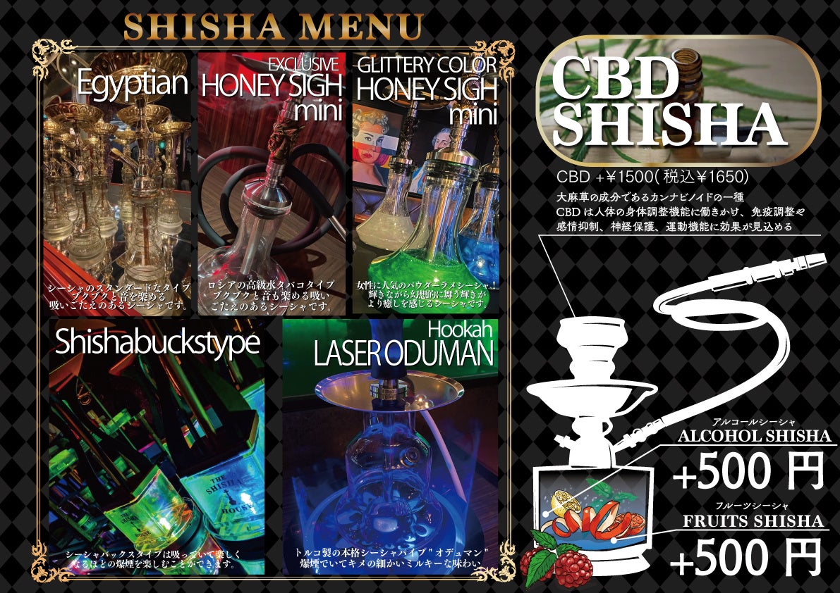 シーシャハウスではご希望に合わせた多くのフレーバーから厳選した”味”、”目”で癒される「ラメ」入りシーシャ、医療や健康・美容業界から注目を集めている「CBD」を使用したシーシャなど、五感を刺激し野外でチル、都心のど真ん中で自然とチルを融合させコロナのストレスから解放させる、最高のチル体験を味わっていただくために様々なフレーバーやシーシャ機をご用意しております。