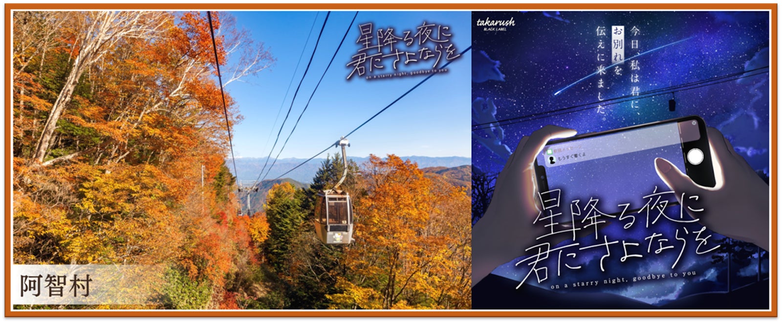 阿智村を舞台にした遠距離恋愛の2人の物語。会場となるヘブンスそのはらでは園内からロープウェイまで紅葉一色に染まります。「日本一綺麗な星空」が楽しめる阿智村。謎解きでは、星にまつわる問題が設置され、ここでしか出来ない体験をお楽しみいただけます。