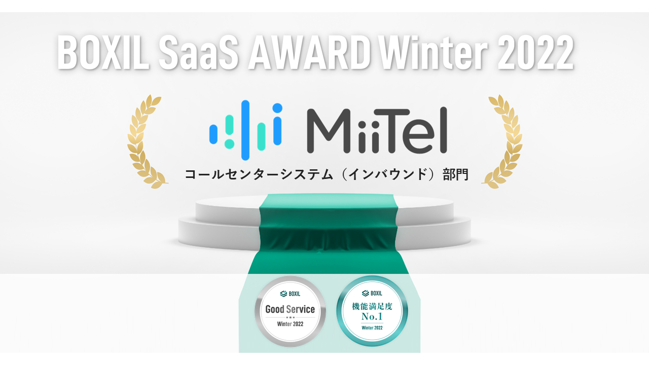 音声AI解析電話MiiTel、「BOXIL SaaS AWARD Winter 2022」コールセンターシステム(インバウンド)部門で「Good Service」「機能満足度No.1」に選出
