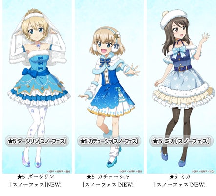 本ガチャには、ダージリンをはじめとし、雪をモチーフにしたスノーフェス衣装を身にまとった生徒が登場いたします。