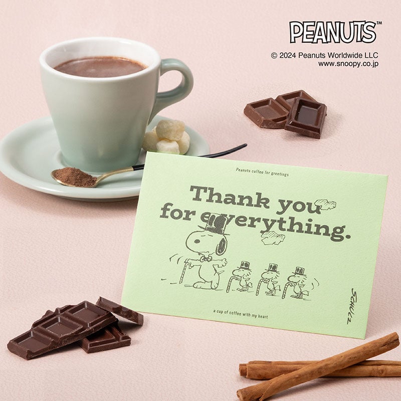 この度「PEANUTS coffee for greetings」から発売する本商品は、「お世話になりました」の気持ちを、カジュアルかつ温かく伝えたい時に便利な封筒型コーヒーギフトです。