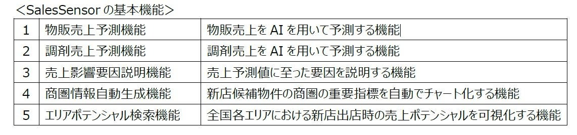 ビッグデータプラットフォームを運営する株式会社True Data(トゥルーデータ、本社:東京都港区、代表取締役社長:米倉 裕之、証券コード:4416、以下True Data)は、ウエルシアホールディングス株式会社(以下ウエルシア)に、データとAIを活用して一気通貫で小売業を支援するリテールDXサービスを採用いただいています。その第二弾として、グループのウエルシア薬局株式会社(以下ウエルシア薬局)にて、AIで新規出店時の売上を予測するサービス「SalesSensor(セールスセンサー)」の導入が決定しましたのでお知らせします。