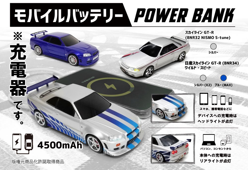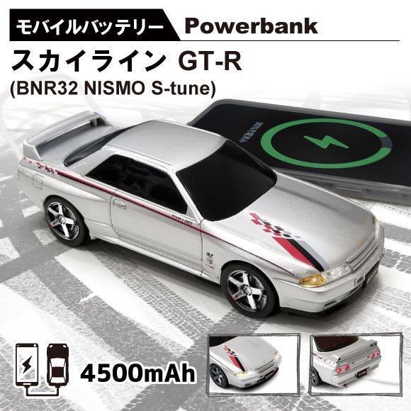 CAMSHOP.JP(https://camshop.jp/?mode=f33)より、自動車型モバイルバッテリー「スカイライン GT-R (BNR32 NISMO S-tune) 」が販売されます。日産自動車㈱公認のライセンス商品です。