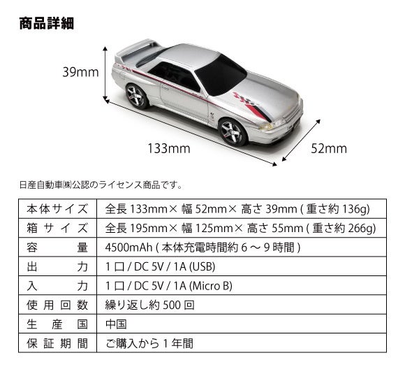 車型モバイルバッテリー スカイライン GT-R (BNR32 NISMO S-tune) 4500mAh