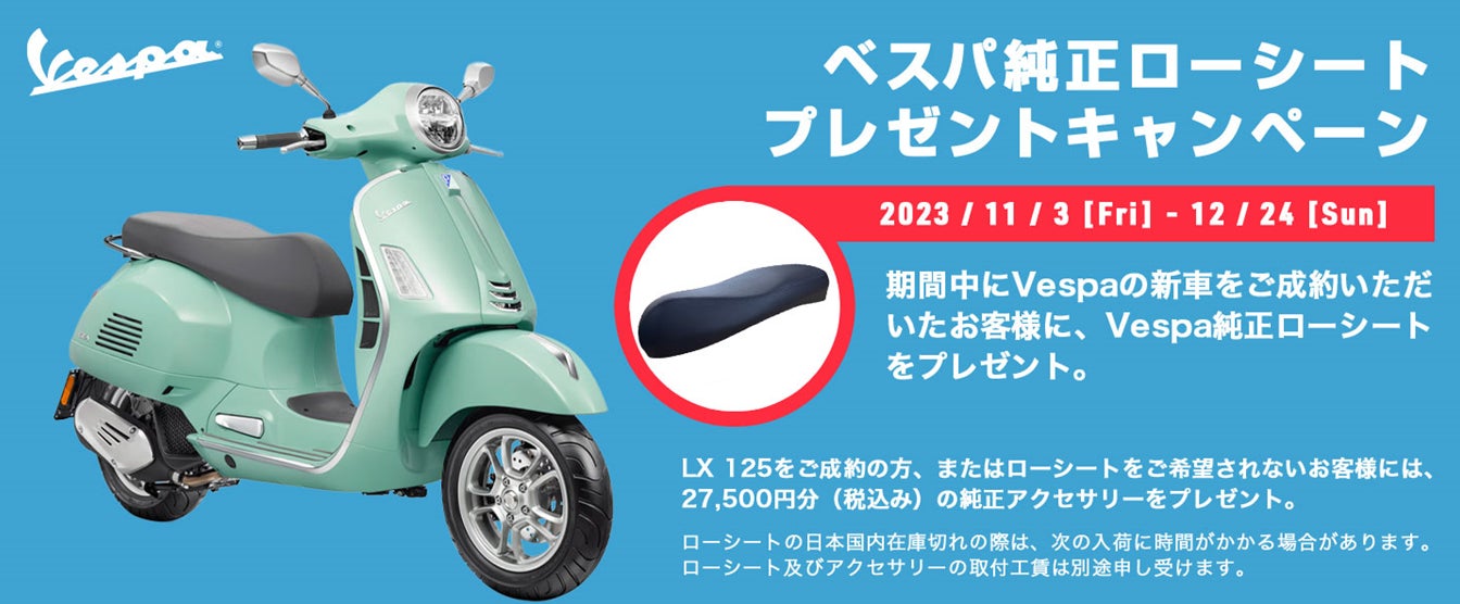 ベスパ 純正ローシート プレゼントキャンペーン実施のご案内