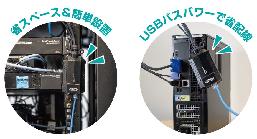 省スペース環境に最適なコンパクト設計と、USBバスパワー駆動による電源アダプター不要のシンプル接続で、IT管理者や現場担当者のリモート運用に新たな選択肢を提供します。さらに、バーチャルメディア対応で、家から会社のような遠隔地から、データの送受信などが可能です。