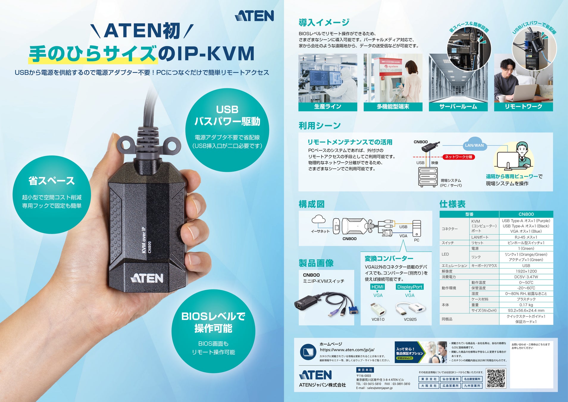 【ATENジャパン初】 ”ハンディ IP-KVM” 登場! USB給電でどこでも即リモート操作『CN800』