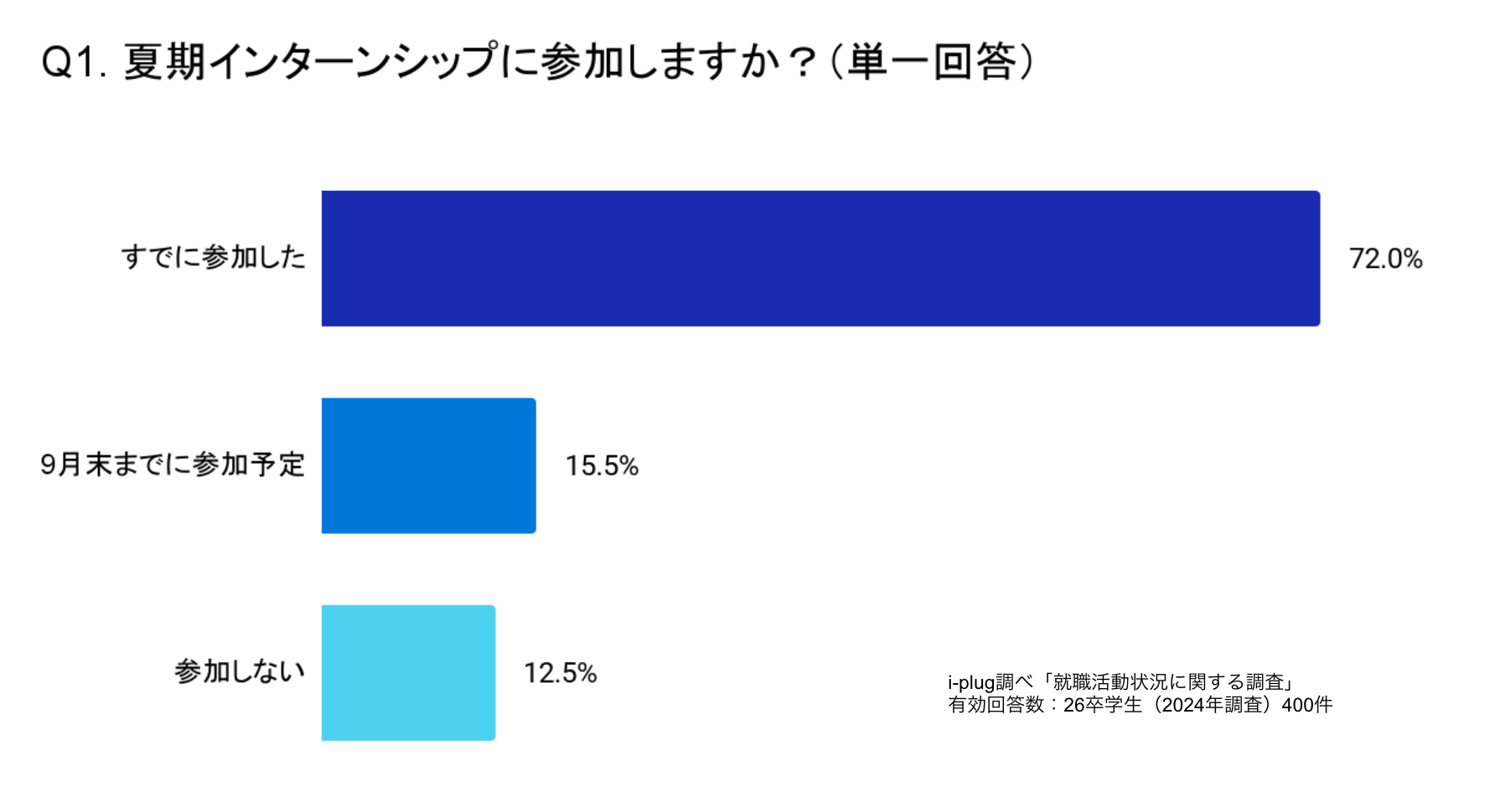 26卒学生の87.5%が「すでに参加した」または「9月末までに参加予定」と回答しました。