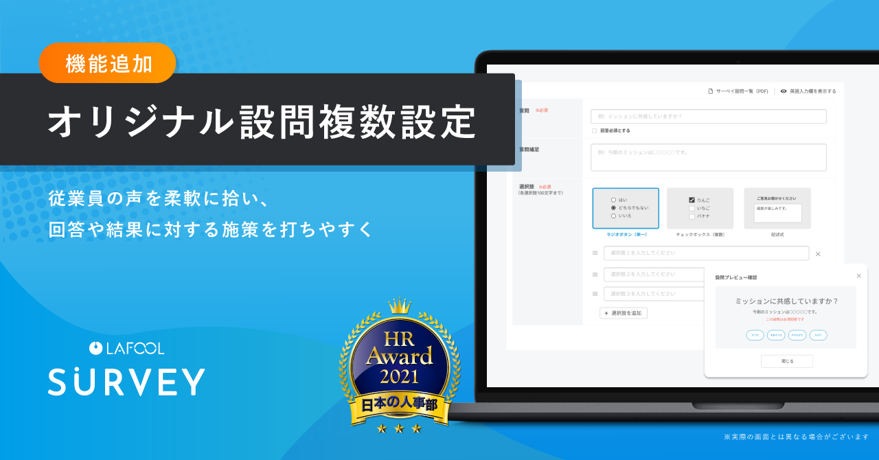 ラフールサーベイ、従業員の声を柔軟に拾い、回答や結果に対する施策を打ちやすくする新機能「オリジナル設問複数設定」をリリース
