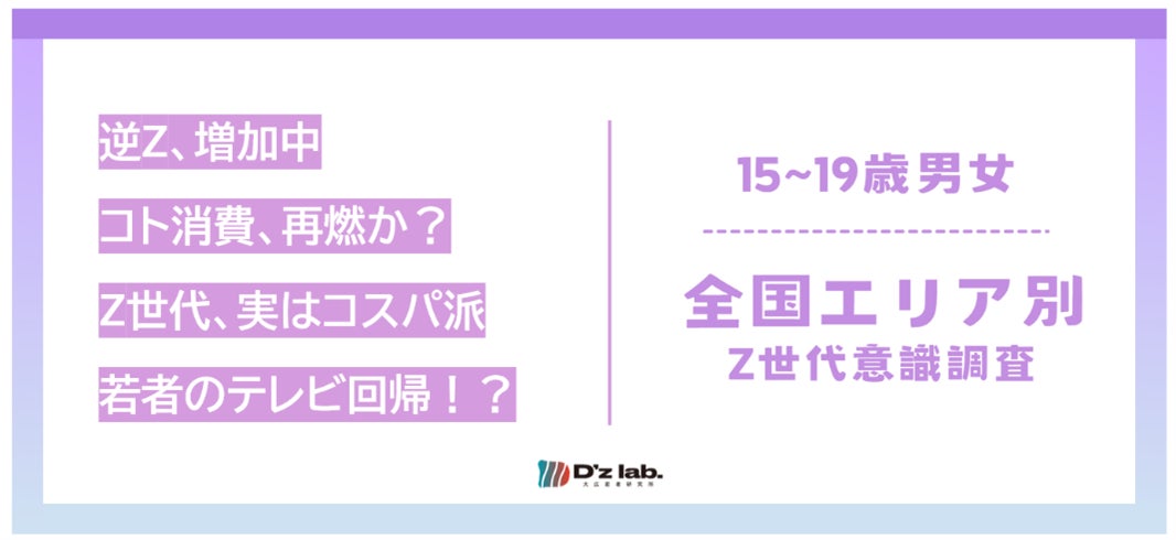 株式会社大広(本社:東京都港区、代表取締役社長:泉恭雄)と、D’Zlab.(大広若者研究所)は、共同で「全国エリア別Z世代意識調査」を実施したことをお知らせします。
