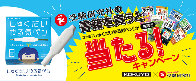 受験研究社の書籍をご購入いただいた方を対象に、抽選でコクヨ『しゅくだいやる気ペン』をプレゼント!