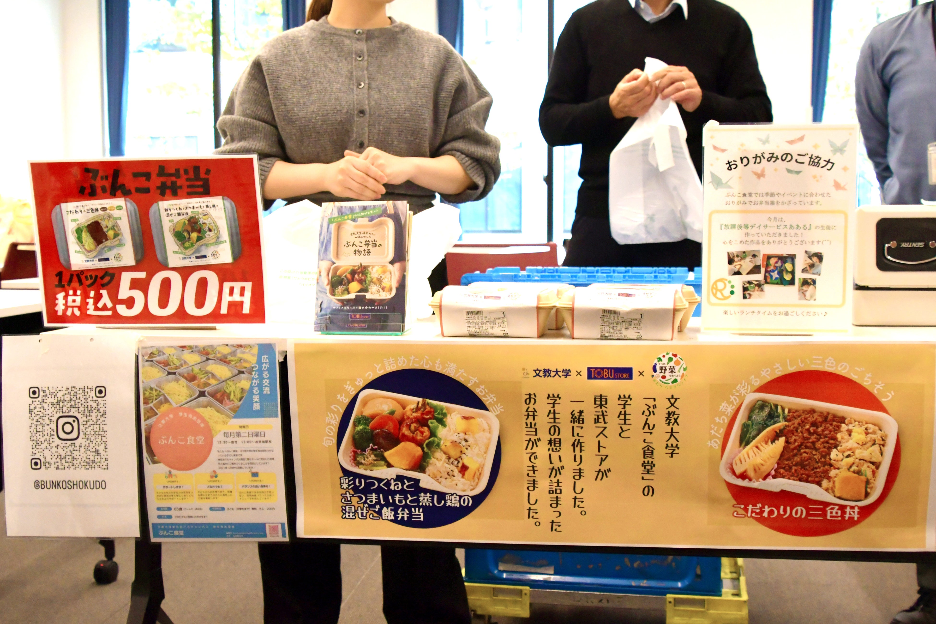 10月26日(日)に文教大学東京あだちキャンパスで開催した「はなはた文教マルシェ」で、東武ストアによる先行販売が実施され、開場後1時間で完売となりました。「ぶんこ食堂」の学生達は、東武ストアと共同で制作した小冊子を来場者に配布しました。